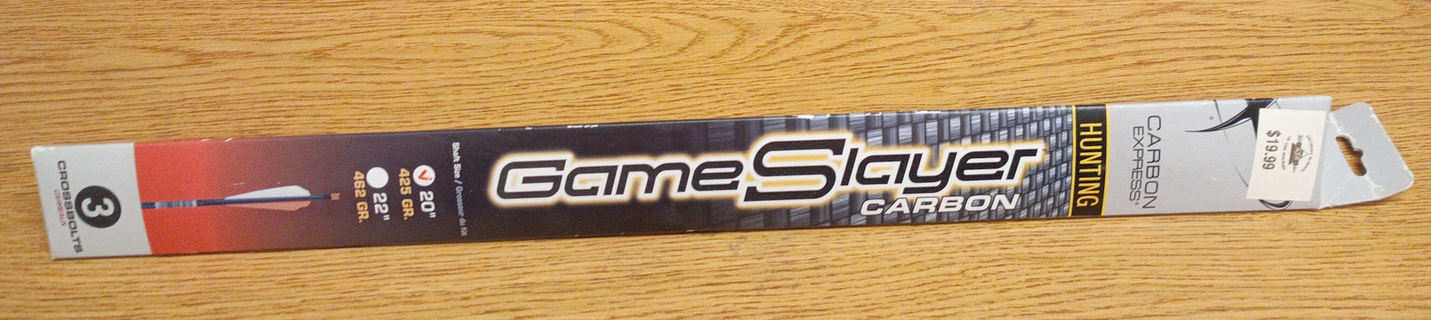 The Game Slayer carbon crossbolt features Carbon Express 360 degree spine consistency for more accuracy and higher performance.