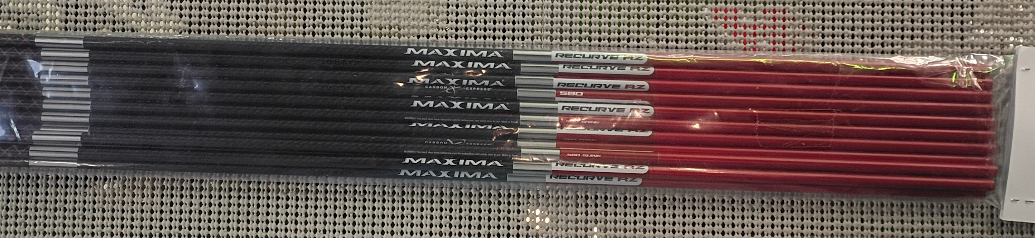 Matched Set – All Maxima Pro Recurve RZ 12 pack shafts are sorted and matched by weight and spine for best-in-class consistency. Spine selection sorting tolerance is +/- 0.0025″. Weight sorting tolerance is +/- 1.0 grains.