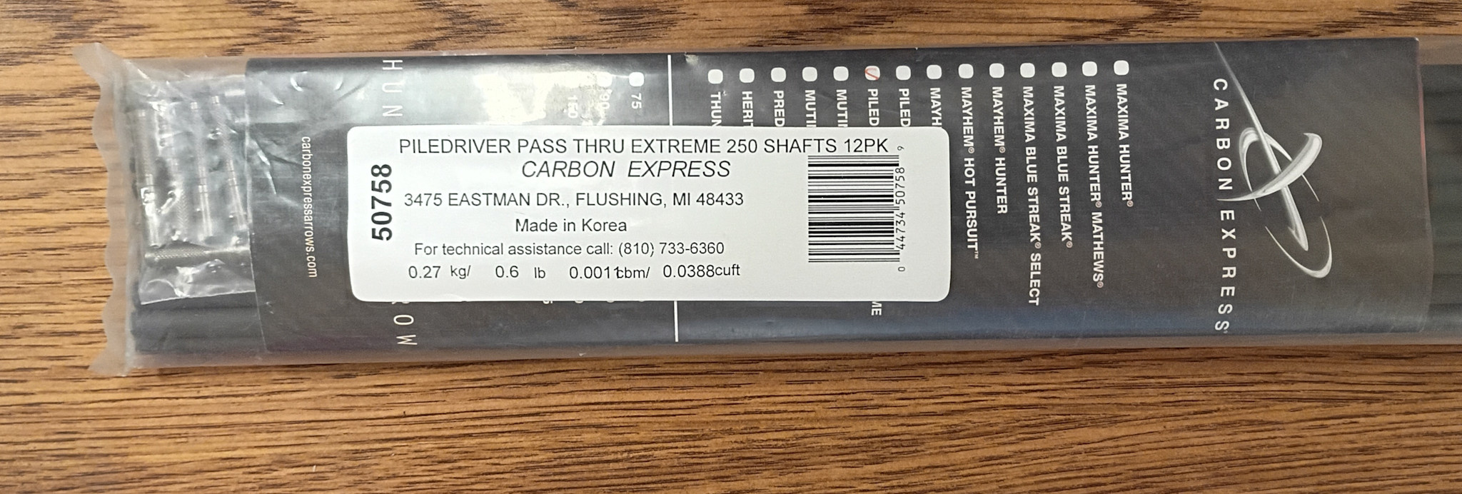 PileDriver Pass Thru Extreme Shafts 250 - .390 Actual Spine 1 Doz
