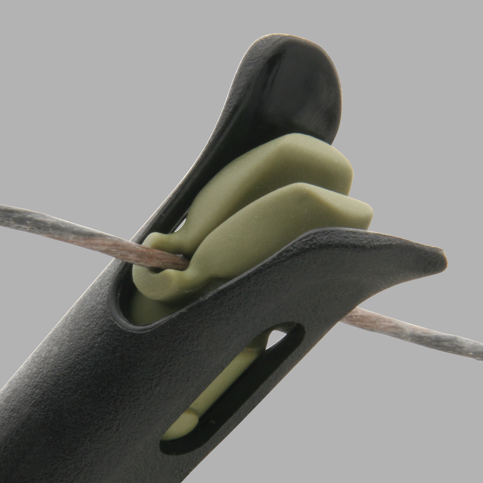 The Vudu-X™ compound bowstring dampener replaces your carbon rod dampener with our patented, highly advanced compound bowstring silencer. Saunders invented the industry’s first string dampener in 1997…The Deadly-Quiet™. The design absorbed excess string energy and helped get the arrow off the string, improving speed and accuracy. All dampeners that followed suffered from one common ailment – repeated string slaps… You’ve probably seen slow-motion videos of these oscillations. Vudu-X™ compound bowstring dampener traps the string in a recoil chamber (see video tab below), eliminating resonant strikes and absorbing limb shock.