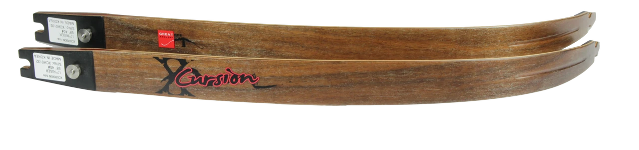 6 layers construction has a center core of two maple laminations with attractive wood veneer overlays and finished with clear fiberglass face and back. The durable finished limb tips accept all types of synthetic string materials. Will fit any ILF style handle risers. Made in Korea.